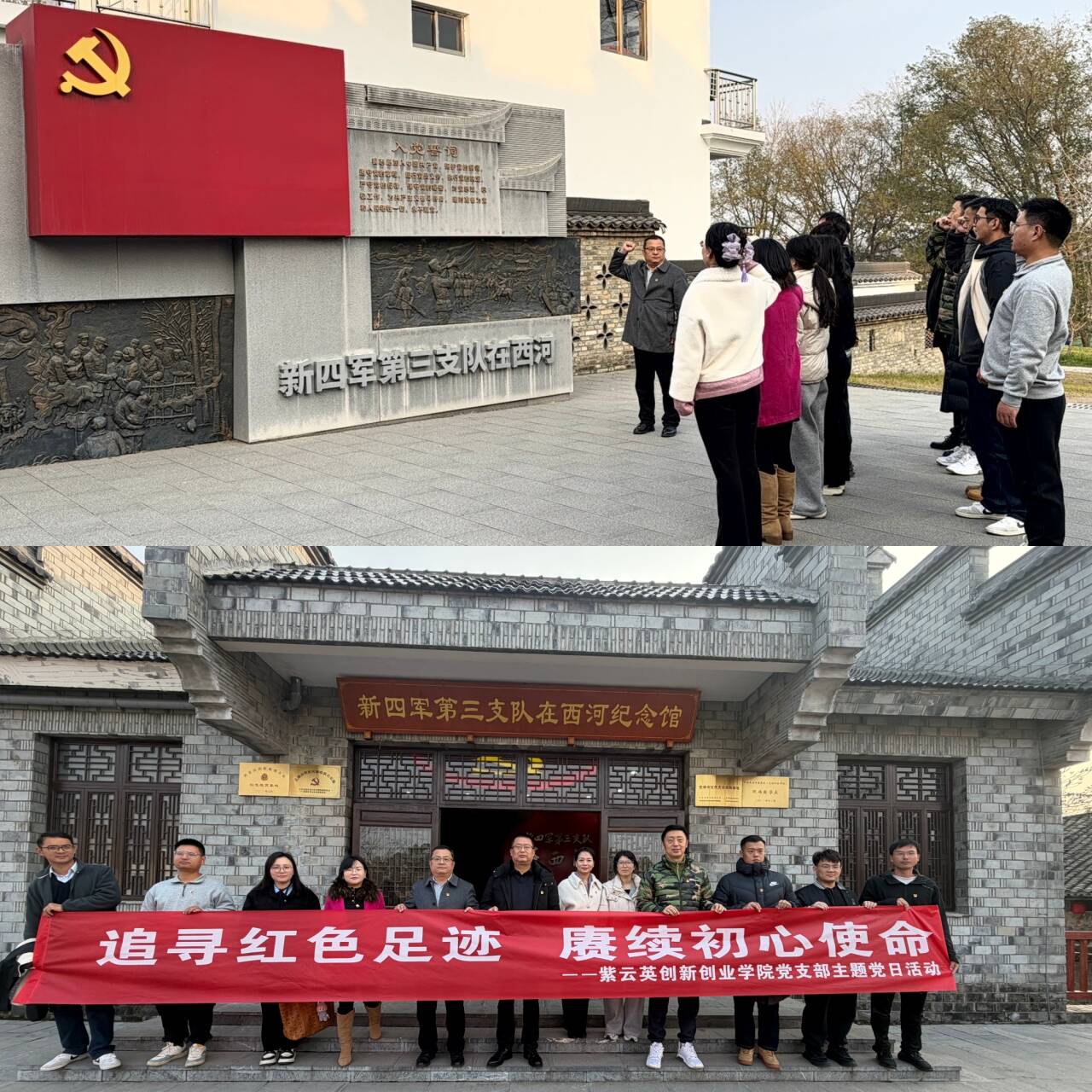 为深入贯彻落实党的二十届四中全会精神,持续强化党性教育、激发教职工干事创业热情,12月11日,紫云英创新创业学院党支部组织开展“追寻红色足迹 赓续初心使命”主题党日活动。支部全体党员参加,在红色实践中锤炼党性、凝聚合力。